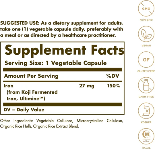 | Koji Fermented Iron 27mg | Iron Deficiency & Energy | Improves red blood cell function, oxygen delivery |