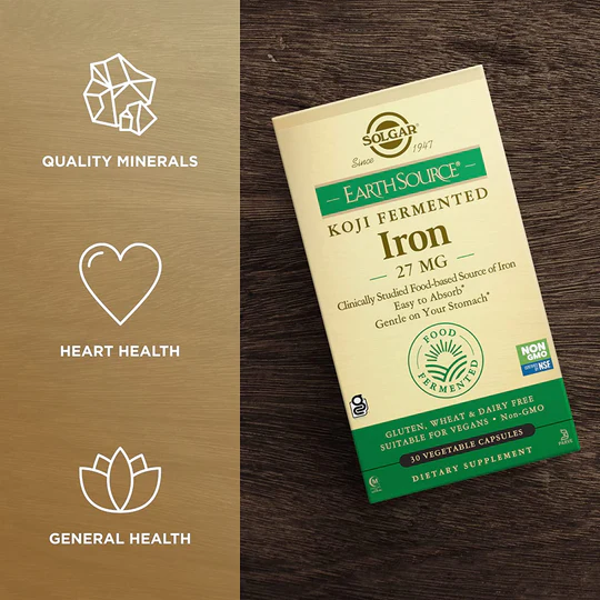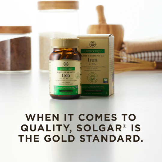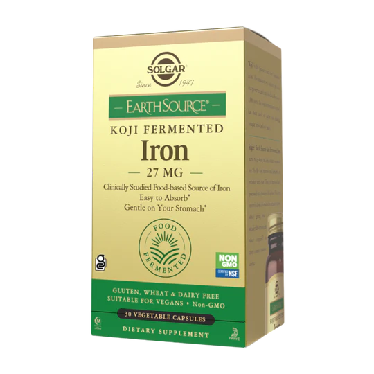 Koji Fermented Iron by Earth Source® is a premium iron supplement made using a traditional Japanese fermentation method. Each capsule contains 27mg of iron bound to koji (cultured rice), creating a body-ready nutrient that’s better absorbed and easier on digestion.